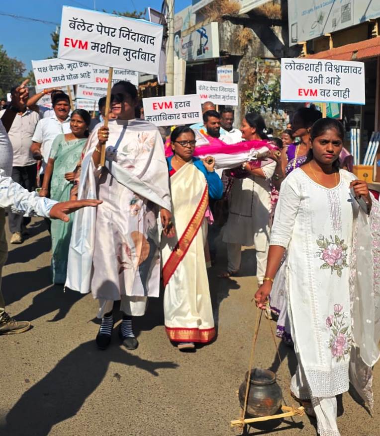 इस गंभीर मामले के विरोध में सोमवार, 29 दिसंबर 2025 को भंडारा में सर्वदलीय मोर्चा निकाला गया. यह मोर्चा हुतात्मा स्मारक, शास्त्री चौक से प्रारंभ होकर जिलाधिकारी कार्यालय तक गया, जहां ईवीएम मशीन की प्रतीकात्मक अंतिम यात्रा निकाली गई. इसके बाद मोर्चा डॉ. बाबासाहेब आंबेडकर प्रतिमा परिसर, त्रिमूर्ति चौक में सभा में तब्दील हुआ.